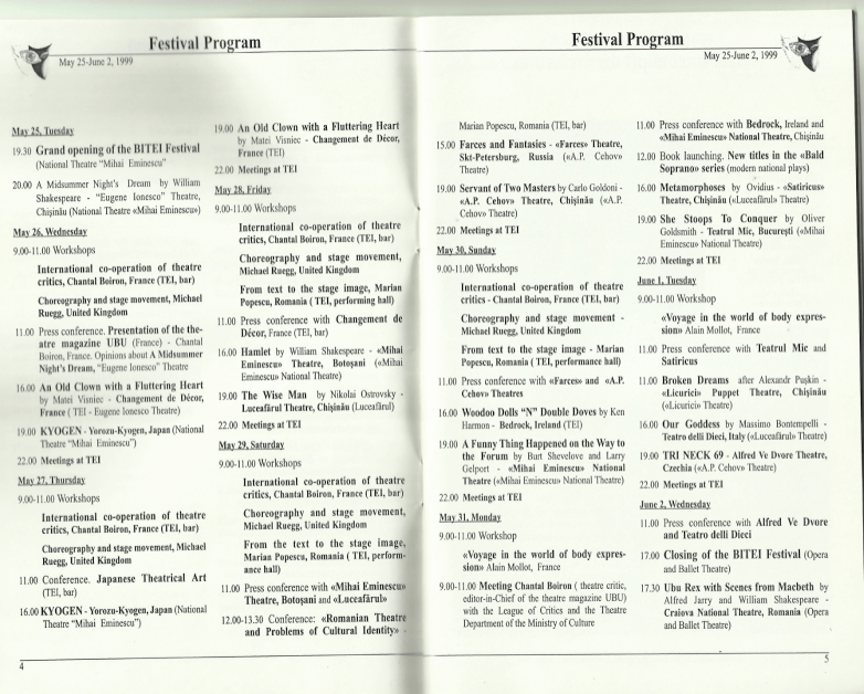 - Conferințe de presă organizate pentru teatrele participante la BITEI 1999