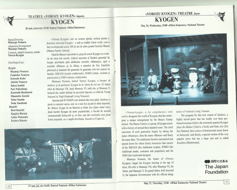 - Conferință ”Arta teatrului japonez” cu Nakanishi Kazuhisa, actor, regizor, Japonia
