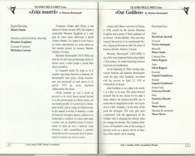 ITALIA: Zeița noastră de Massimo Bontempelli, regie Mauro Stante, Teatro Delli Dieci
