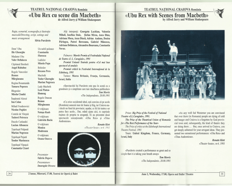 ROMÂNIA: Ubu Rex cu scene din Macbeth de Alfred Jarry și William Shakespeare, regie Silviu Purcărete, Teatrul Național Craiova